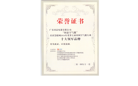 8月,同益空氣能榮獲“2012年品牌中國金譜獎”——中國空氣能行業十強品牌。